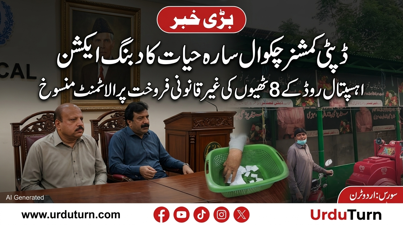 ڈپٹی کمشنر چکوال سارہ حیات نے ہسپتال روڈ کے ٹھیوں کی غیر قانونی الاٹمنٹ، کرایہ پر دینے اور فروخت کرنے کے خلاف دبنگ کارروائی کرتے ہوئے اہم فیصلہ سنا دیا۔ مکمل تحقیقات کے بعد 8 ٹھیوں کی الاٹمنٹ منسوخ کر دی گئی ہے۔